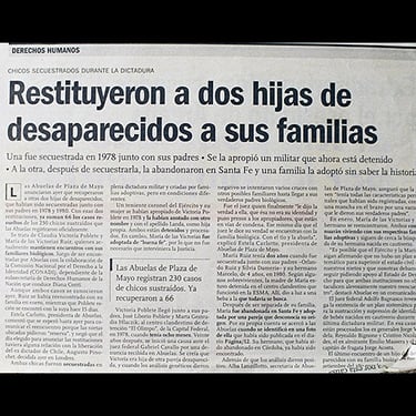 The Argentine desaparecidos of the 1980s, victims of the Condor Plan, haunt collective memory. This documentary work juxtaposes portraits and archives, faces and objects, reconstructing the identities of the stolen children.