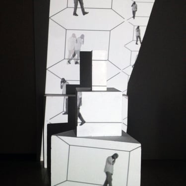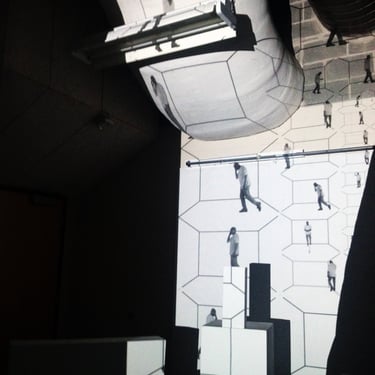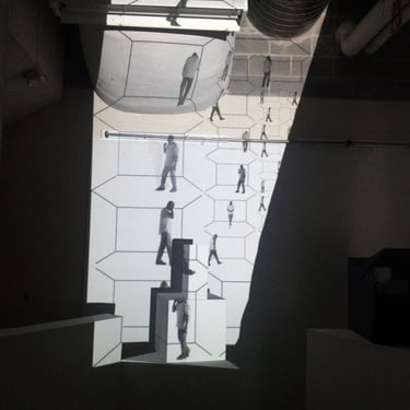 Using these observations, I photographed myself in stop-motion, mimicking “Cell Trance” gestures—from happy to frustrated and paranoid—while walking in circles. I then created video sequences, arranging them in a virtual white box grid. Larger sequences framed the edges, smaller ones filled the center, creating a mise en abyme through repetition and duplication.