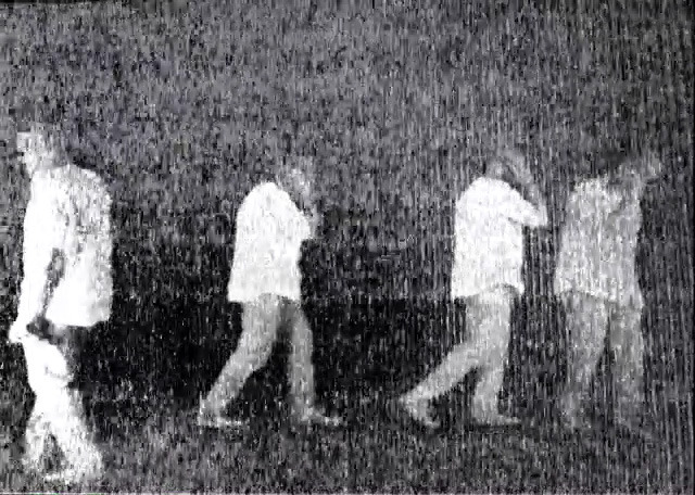 À partir de ces observations, je me suis photographié en stop-motion, reproduisant les gestes du “Cell Trance”—de l’attitude joyeuse à la frustration ou à la paranoïa—tout en marchant en cercle. J’ai ensuite créé des séquences vidéo, disposées dans une grille virtuelle blanche. Les séquences les plus grandes encadraient les bords, les plus petites occupaient le centre, créant une mise en abyme par répétition et duplication.